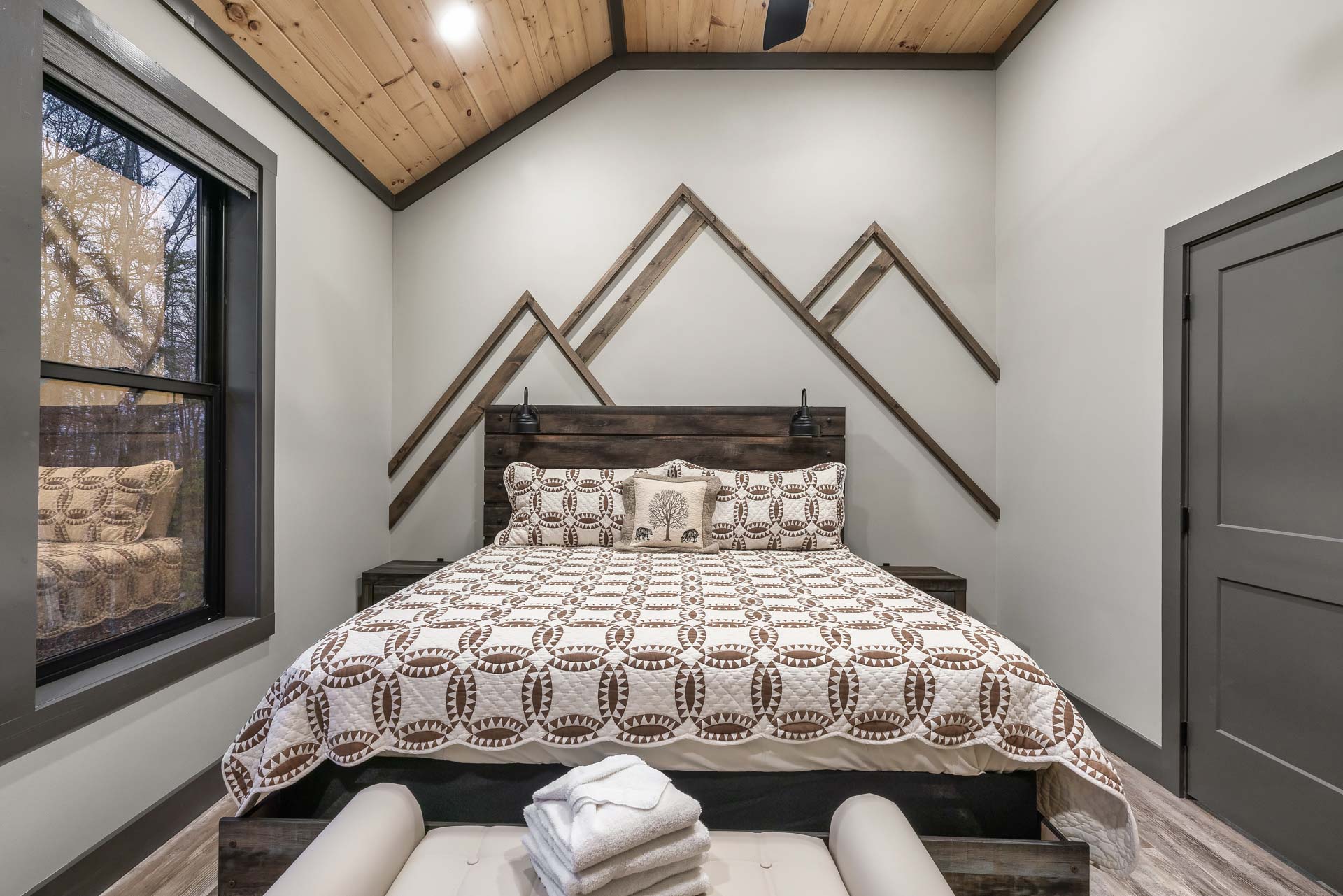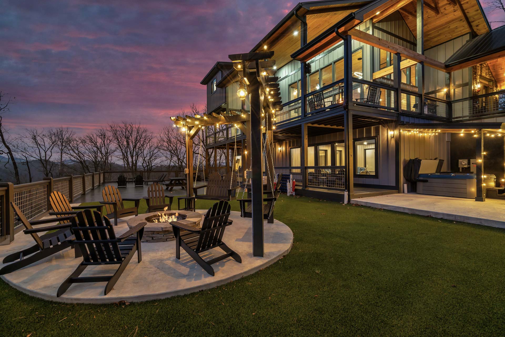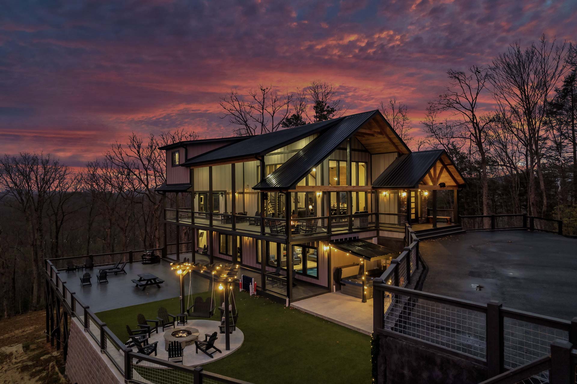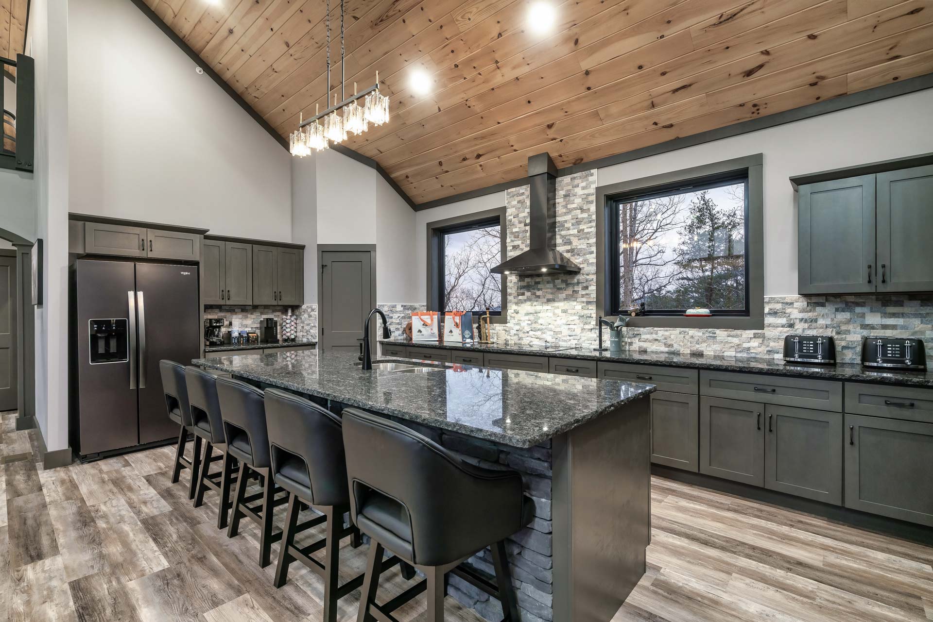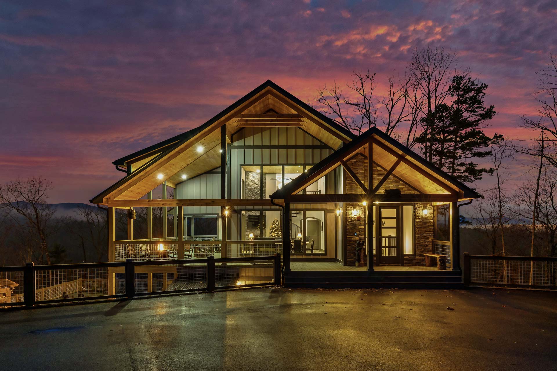 This home captures some of the most breathtaking views of Mount LeConte, enjoyed from expansive decks and thoughtfully designed outdoor living areas with artificial turf. Designed for both luxury and entertainment, the 6-bedroom, 6.5-bath residence features a dedicated game room, private theater, and an indoor pool, creating a true destination retreat.